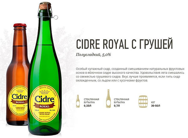 Сидр – это слабоалкогольный напиток, получаемый посредством естественного сбраживания яблочного сока. Сидр имеет красивый янтарный цвет и крепость 6-7°.