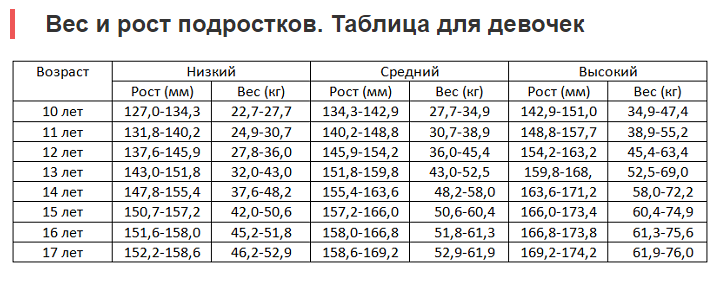 Рост и вес ребенка в 12 лет: таблица и нормы