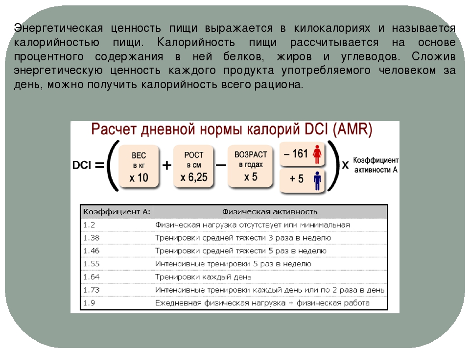 Формула расчета суточного потребления калорий