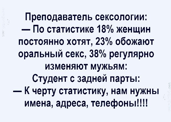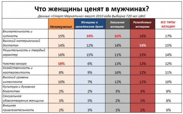 Следует отметить, что опрос проводился среди замужних барышень, явно склонных к изменам, поэтому его результаты не совсем репрезентативны.