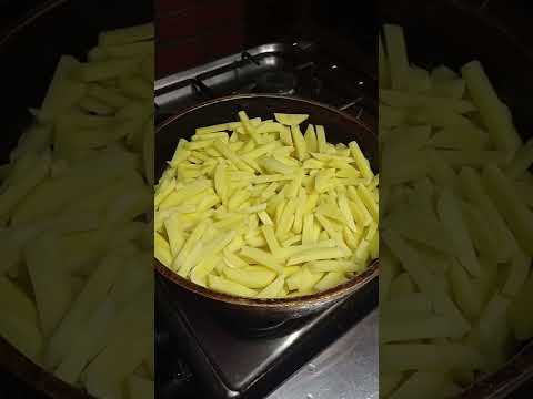 Это самый простой рецепт картофеля фри. Это просто работает. Резать. Положить в холодное масло. Варить 25 минут. Есть.