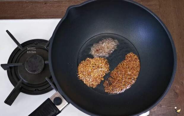 При контакте с раскалённым маслом или металлом большинство специй просто сгорят, и придадут блюду горький вкус. Специи добавляем позже.