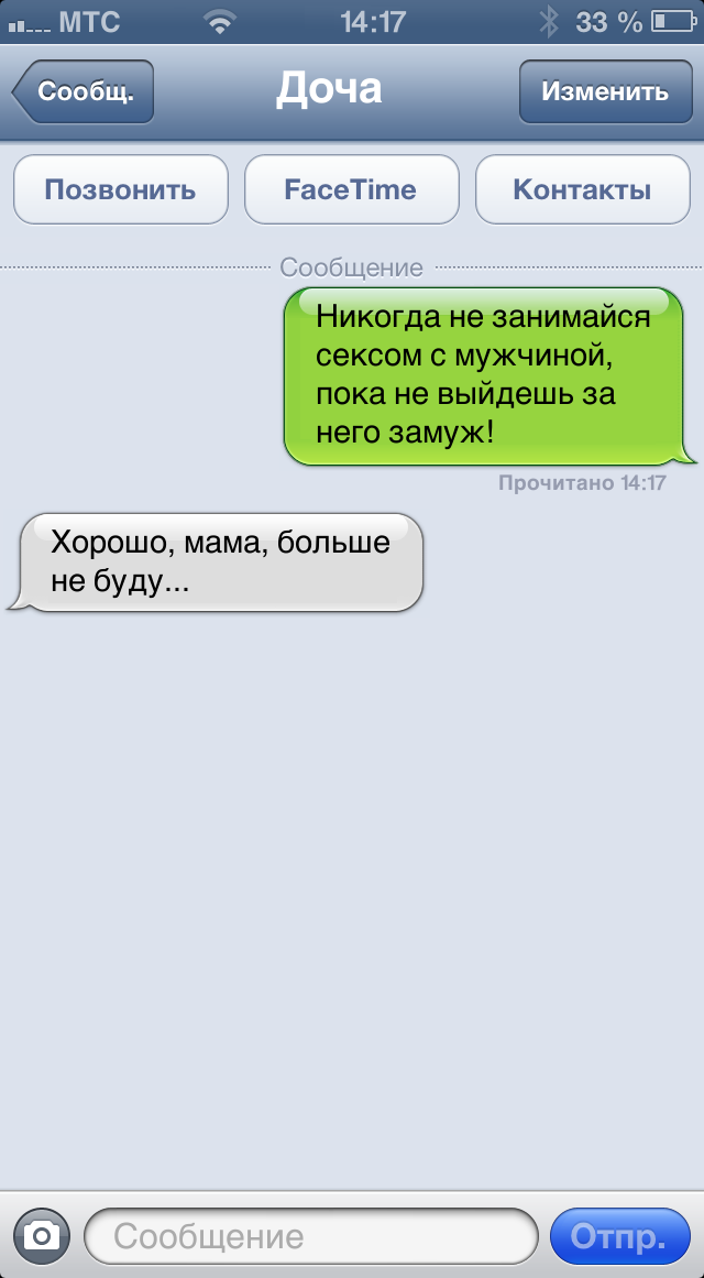 - Все ваши сообщения отмечаются одной галочкой (сообщение отправлено), но никогда двумя галочками (сообщение доставлено).