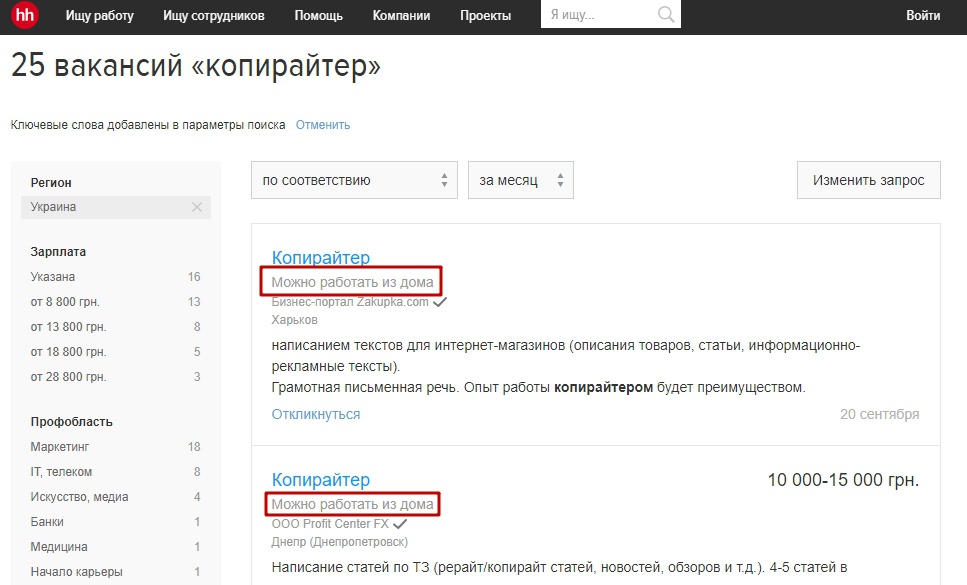 Количество проверенных компаний – более 1,5 миллионов, открытых вакансий – более миллиона. Список возможных профессий огромный.