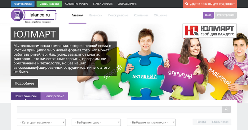 В этом разделе на сайте Юла можно найти предложения работы от известных компаний: IKEA, Ситимобил, Delivery club, Билайн и другие. Изначально сайт был создан как стартап Mail.ru Group, сейчас он, а в частности раздел с вакансиями, растет и развивается.