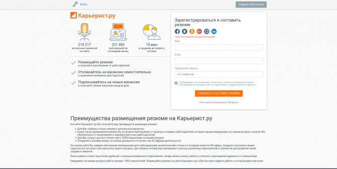 Принцип размещения резюме похож на «Вакансии на Авито» – определенной формы нет, свои услуги можно описать произвольно. Проверки работодателя нет – можно только подтвердить профиль через социальную сеть VK. Сайтом предусмотрен рейтинг работодателя, но у большинства крупных компаний он не проставлен.
