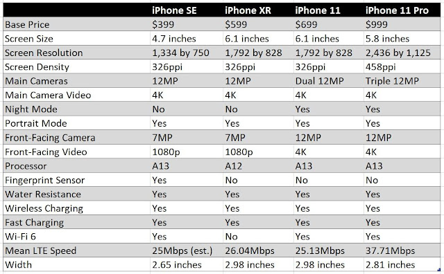- iPhone SE 2020 — 12 МП, апертура f/1.8, OIS, портретное освещение, стереозапись, запись видео 4K 60 кадров/с, 7 МП f/2.2 HD-камера FaceTime