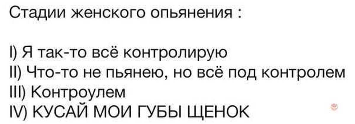 • Пол – женщины обычно пьянеют быстрее мужчин.