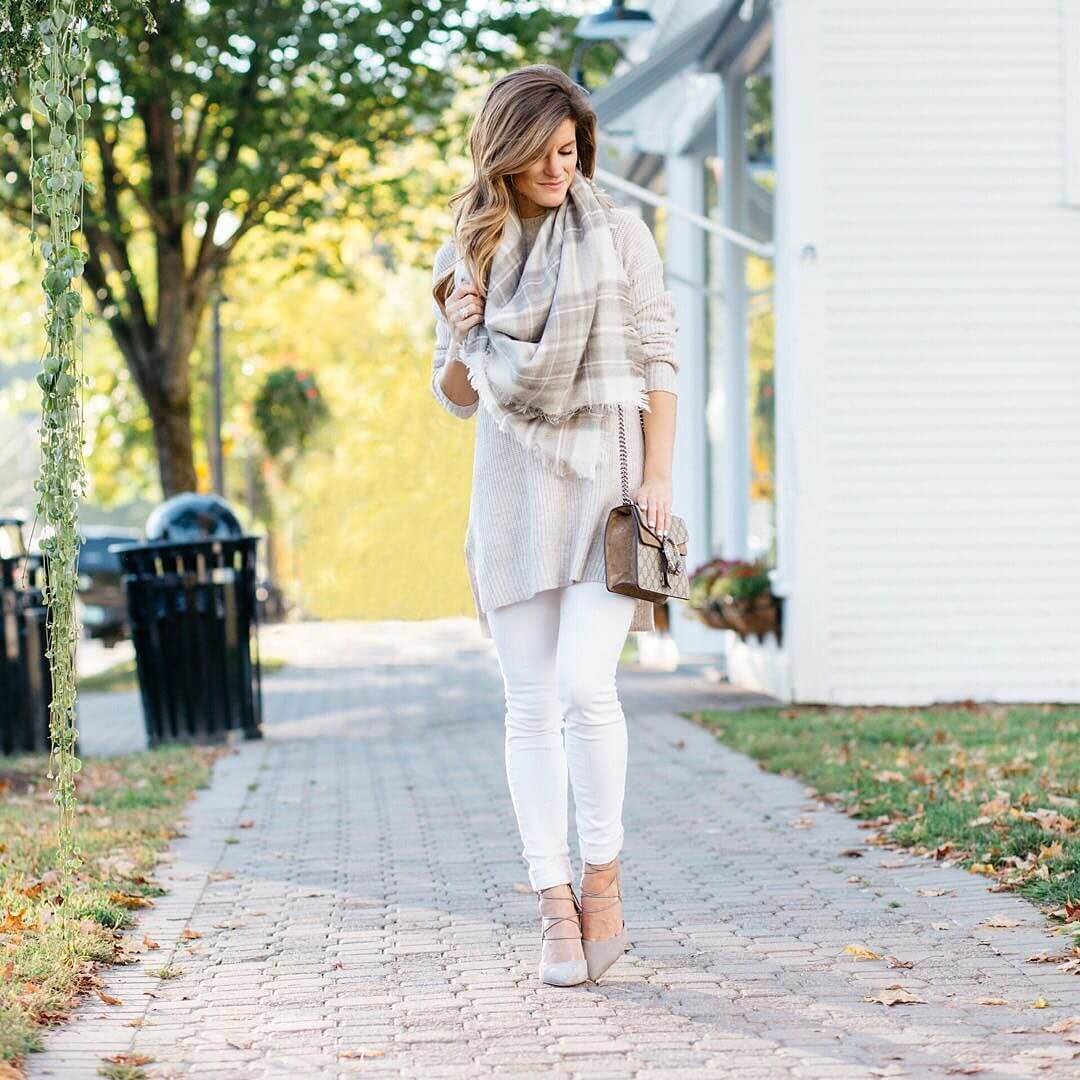 Различные шарфы также идеально вписываются в повседневный лук для ношения в холодную погоду. Они придают воздушность и мягкость.