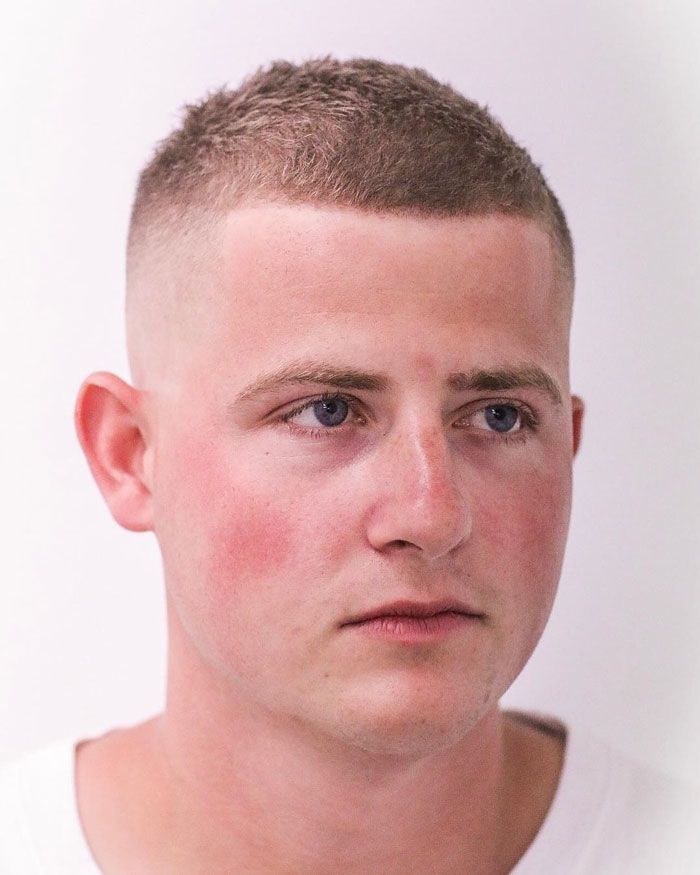 Также гармонично эта стрижка будет смотреться, если ее обладатель имеет квадратную или круглую физиономию. Точно не нужно стричься полубоксом представителям сильного пола, у которых вытянутое лицо, ведь выстриженные височные зоны и более длинные пряди на темени сделают его визуально еще длиннее.