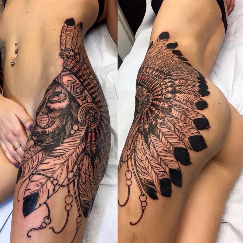 Во-первых, благодаря расположению на бедре (тоже красиво), а затем благодаря изысканному оттенку и тонкости выбора цвета. Стиль Дотворк используется для затенения Мандалы. Здесь художник должен тщательно обвести чернилами несколько точек, ни в коем случае не соприкасаясь ни с одной из них. Затем внутри цветов вводится второй стиль затенения. Здесь используется стиль Whip-Shading, чтобы избежать создания сплошных линий.