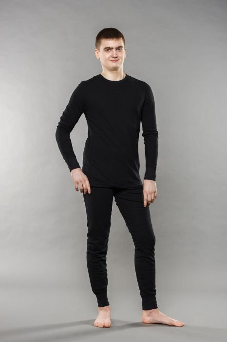 Мужское термобельё черного цвета из натурального материала для повседневного использования.