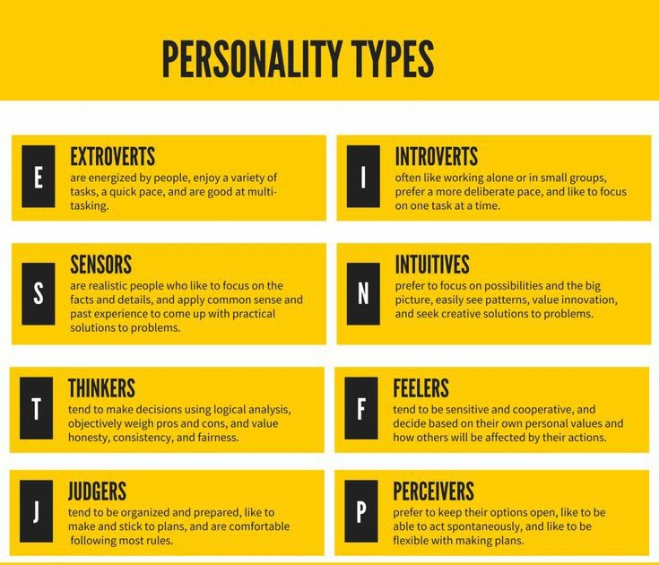 • Восприятие и интуиция : Как люди воспринимают информацию и ситуации и взаимодействуют с миром.