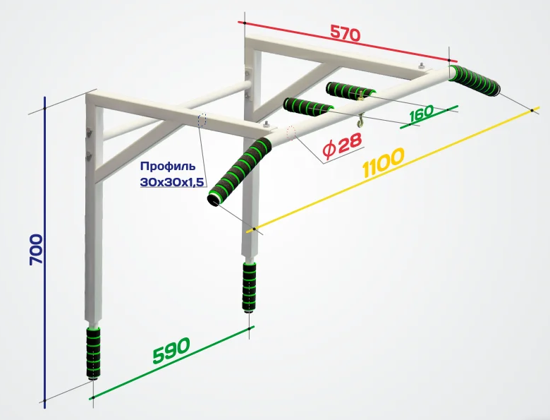 - Отдельная горизонтальная перекладина для подтягиваний на стене или потолке