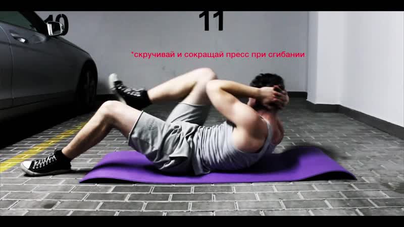 Как выполнять: Классическое упражнение на пресс новичкам начинается с принятия лежачего положения на гимнастическом ковре. Согните ноги в коленях, сделав упор на полную стопу. Руки скрещены на затылке, локти разведены. Поднимайте верхнюю часть корпуса, скручиваясь в области пресса. Не отрывайте спину полностью! В пиковой фазе делайте задержку, после чего возвращайтесь обратно.