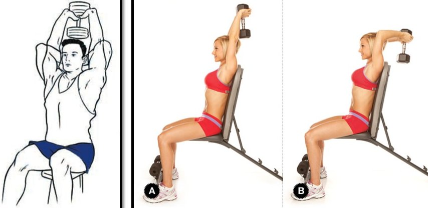 - Разгибания из-за головы одной рукой