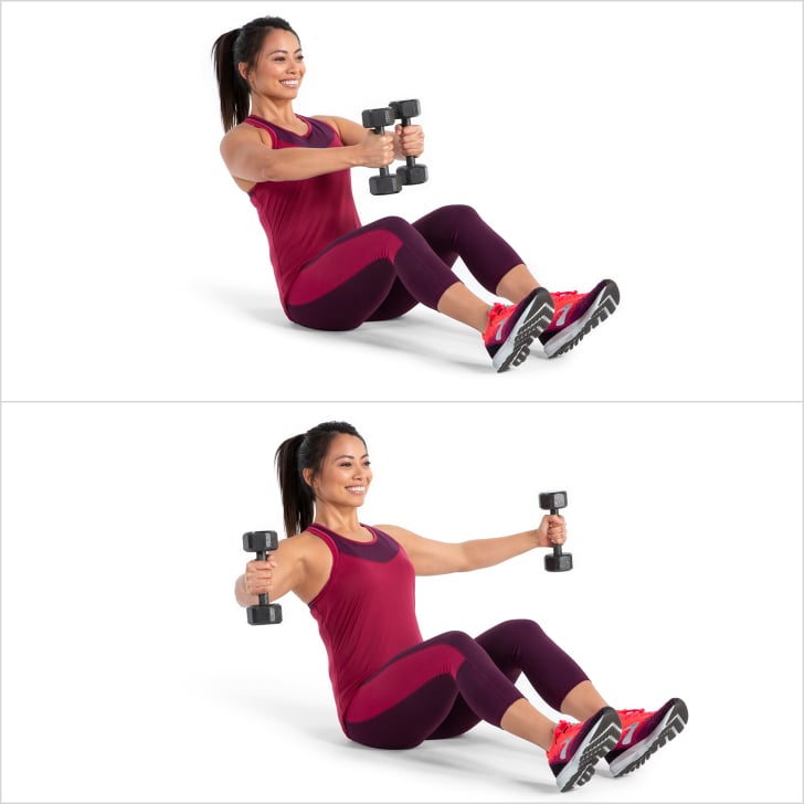 Если у вас дома нет гантелей, вы можете использовать бутылки с водой или банки из-под супа. Вы также можете делать это в тренажерном зале, если хотите.