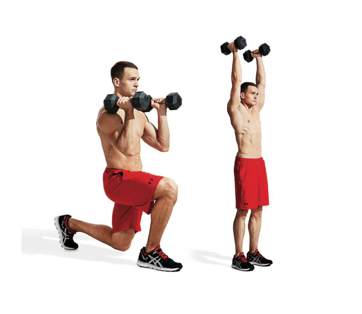 Гири для этого нет. Сделайте шаг назад на одну ногу, поставьте колено на землю и поднимите руки над головой. Сделайте паузу, чтобы позволить вашим бедрам и плечам разогнуться — держите корпус напряженным — затем поменяйте местами. Повторите с противоположной стороны; это одно повторение.