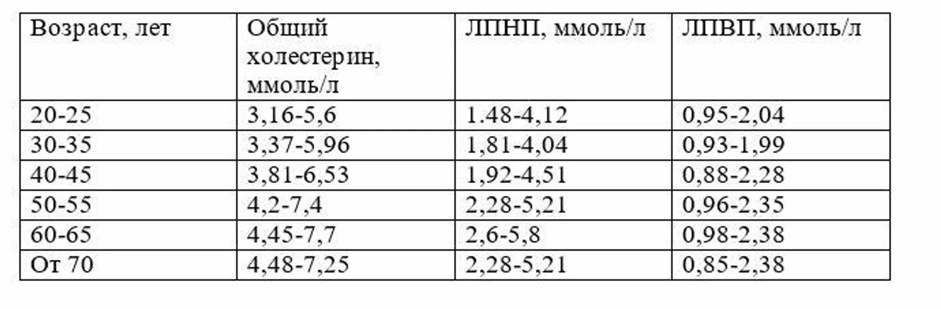 - Холестерин липопротеинов высокой плотности (ЛПВП):> 1,0 ммоль / л