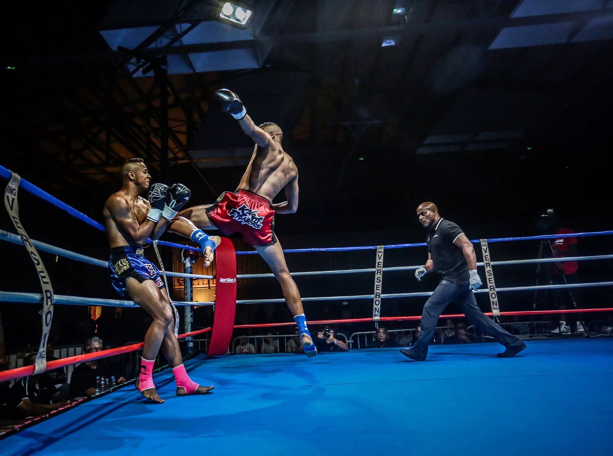 Муай Тай сталкивает двух спортсменов друг с другом на боксерском ринге, и цель этого вида спорта состоит в том, чтобы один боец выиграл поединок, нокаутировав своего противника, при этом соперник останавливается рефери как непригодный для продолжения (технический нокаут) или выигрыш по очкам.