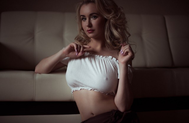 Белокурая крошка с натуральными титьками попрыгала на члене агента